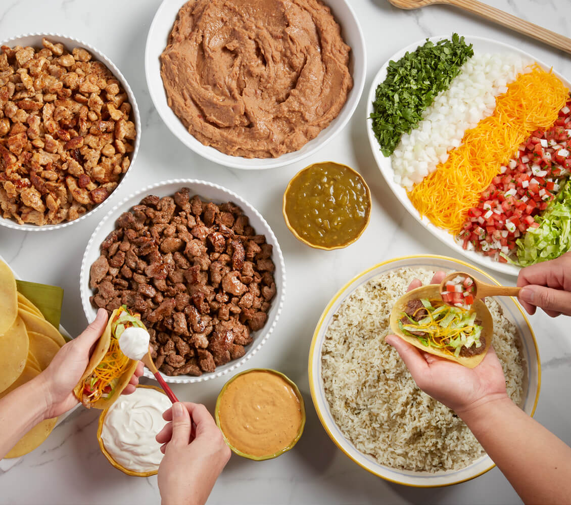 The perfect buffet-style options for your gathering! Each kit includes all of the ingredients to build your own tacos. 2 sides, and choice of 3 sauces. Perfect for groups of 10, 15, 20 or more!